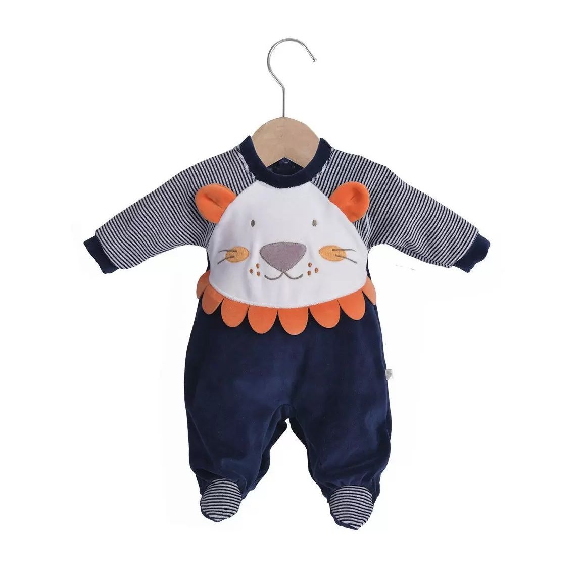 > Detalhe de Leãozinho com juba e orelhinhas bordados na frente e mangas listradas.