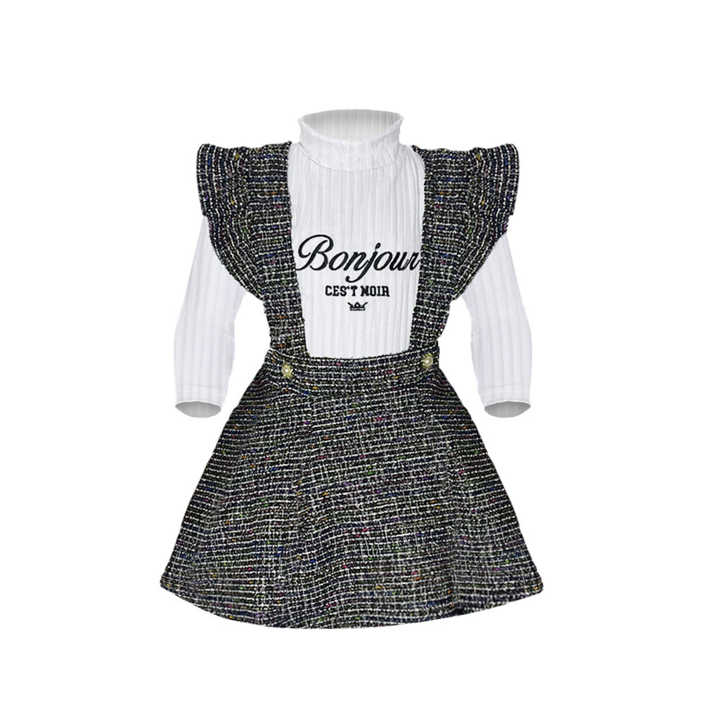 Conjunto Blusa Tecido Canelado e Salopete Tweed