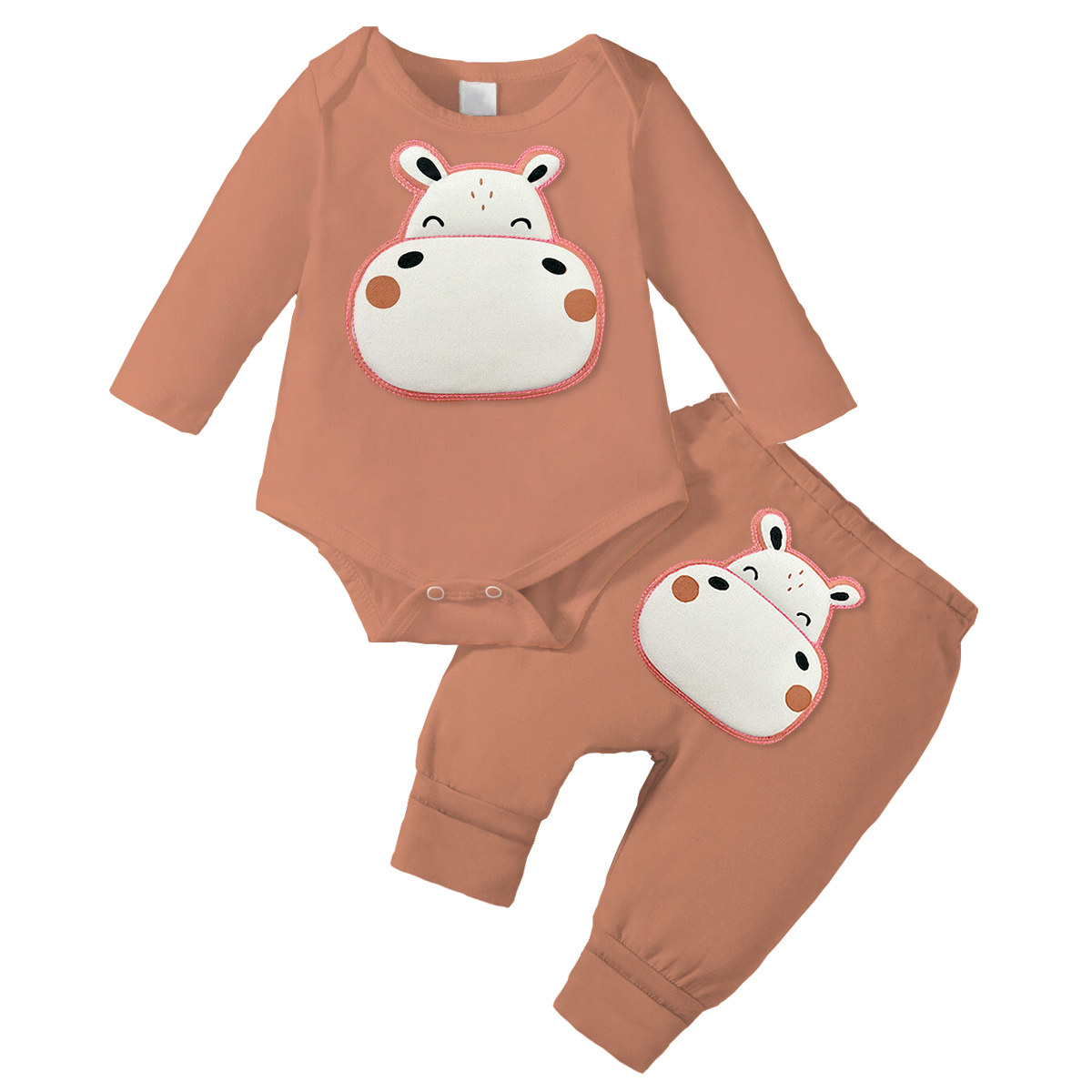 Conjunto Bebê Menina Body e Calça Nude Aplique Hipopótamo