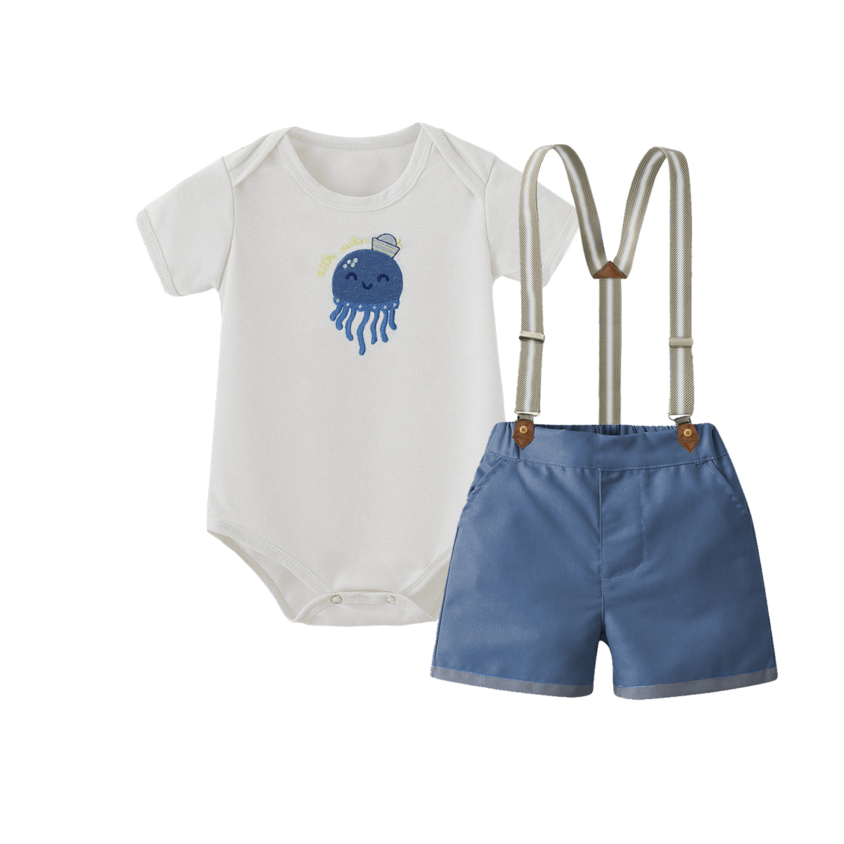 Conjunto Bebê Menino Body Polvo e Shorts com Suspensório
