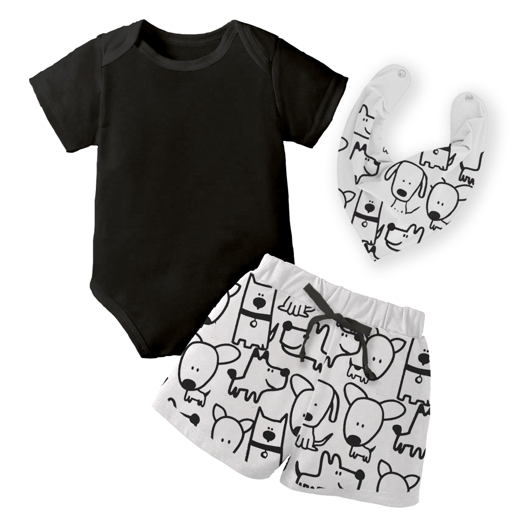 Conjunto 3 Peças Preto e Branco Cachorrinhos
