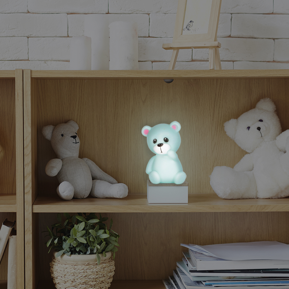 Mini luminária de ursinho LED que oferece uma luz suave e agradável, ideal para ambientes como quartos infantis ou para quem tem medo do escuro. A iluminação é projetada para não prejudicar a visão e as lâmpadas são seguras e não superaquecem. Funciona com bateria (inclusa), tornando-a uma opção econômica e prática para decorar e embelezar qualquer espaço.