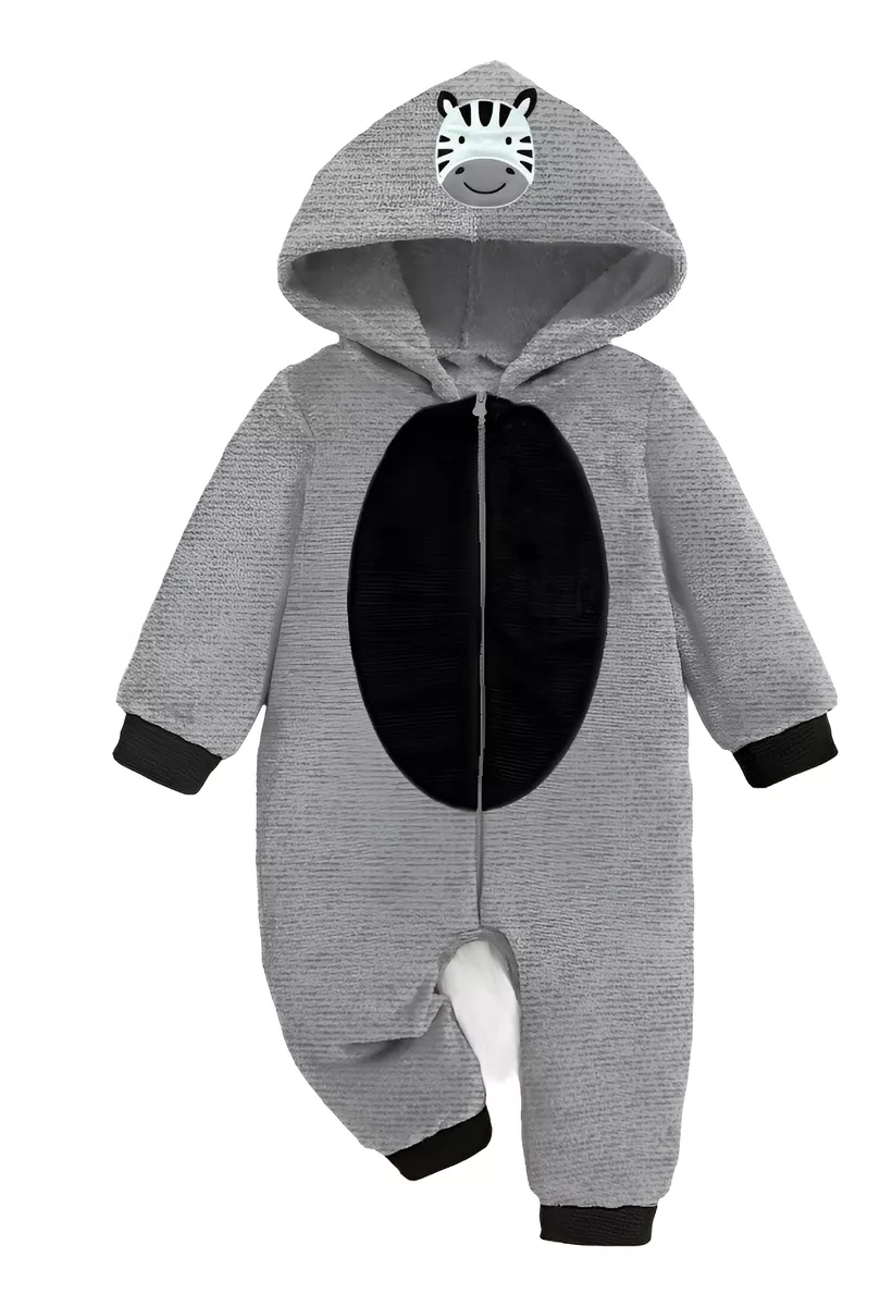 Macacão Bebê Menino com Capuz em Bouclê Zebrinha Cinza