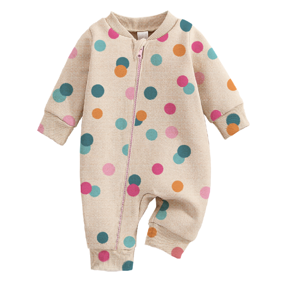 Macacão de Bolinhas para Bebês e Linho: Prático, Fofo e Confortável! Com zíper e proteção, manga longa para aquecer os pequenos com estilo. Ideal para mamães e papais que prezam pelo conforto dos seus bebês. Garanta já o seu!